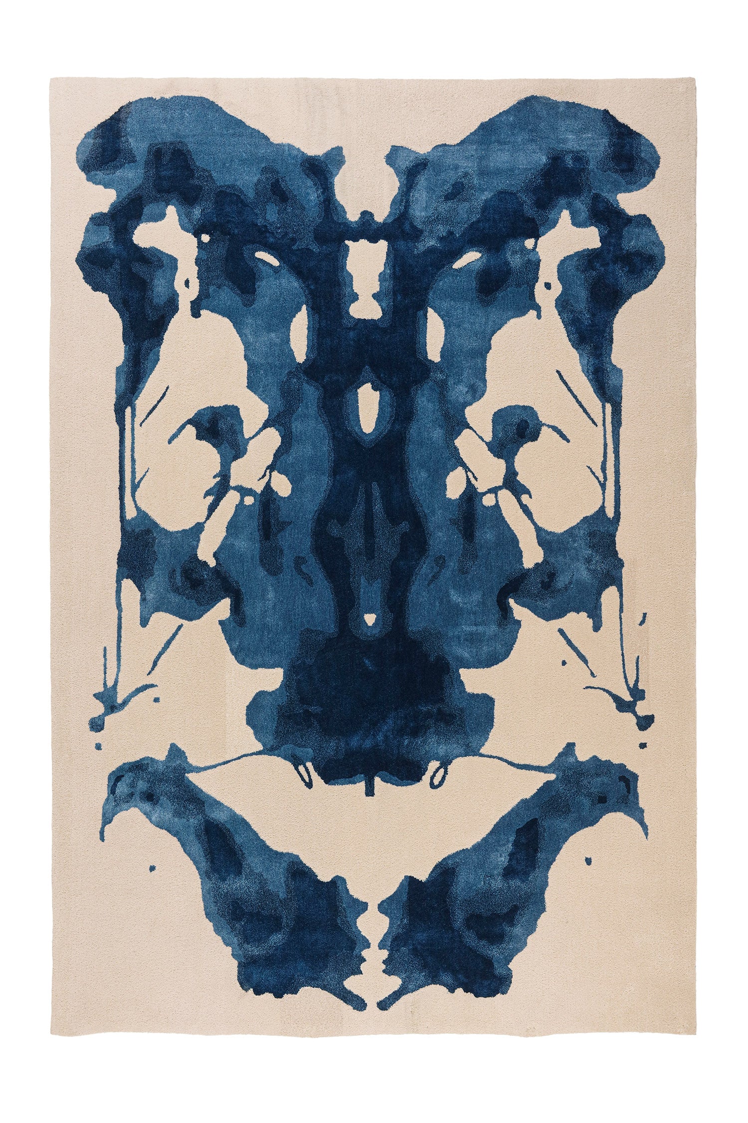 Inspired by the inkblot, a primal symbol of the unconsciousness; this collection translates psychological tension into textile. Two rug designs, in deep black and visceral blue, mirror the duality of instinct. The symmetry and ambiguity created through a meditative process of folding, inking, and listening, the forms evoke both shadow and serenity. This collection is a woven reflection of what lies beneath the surface.