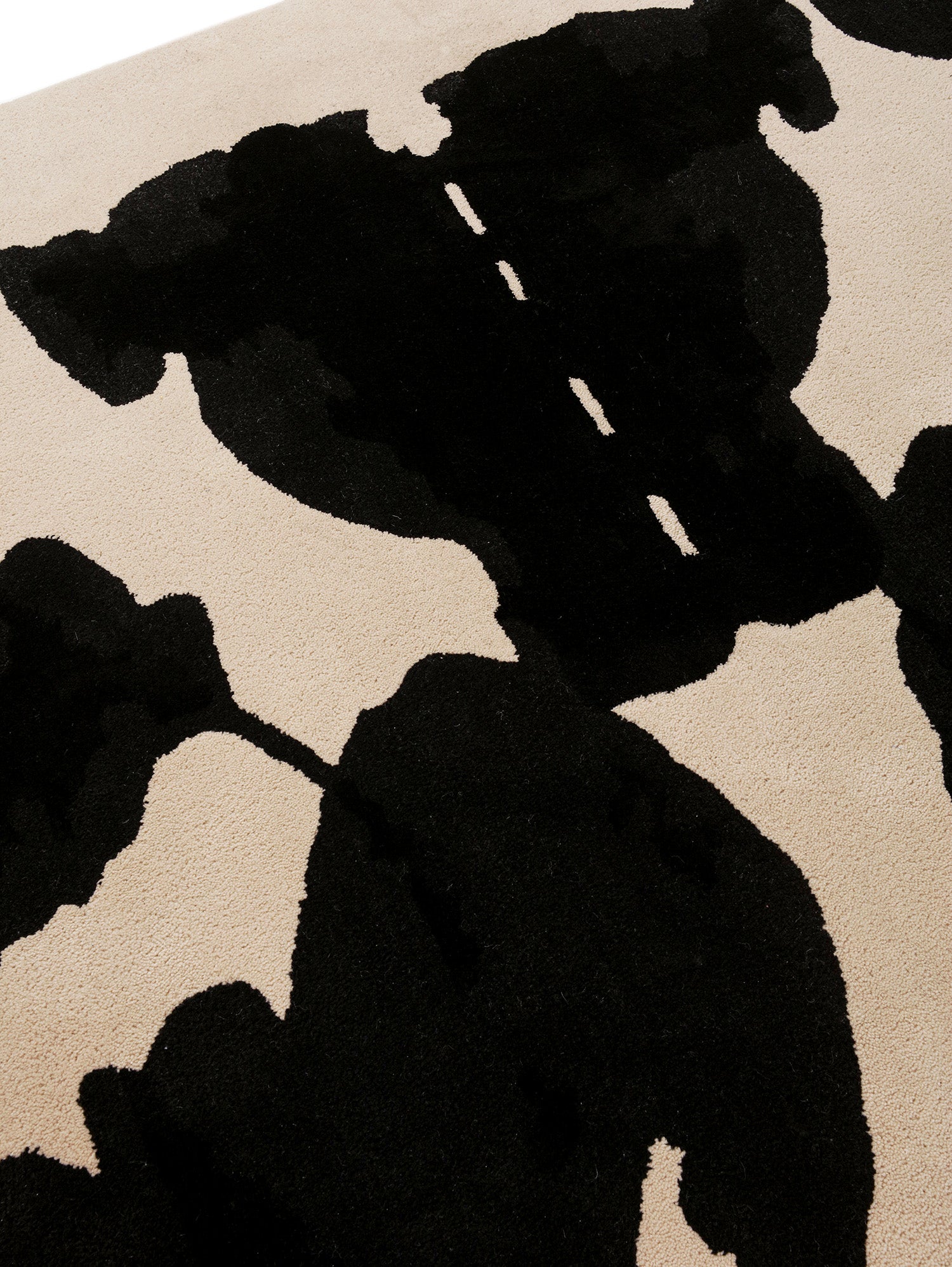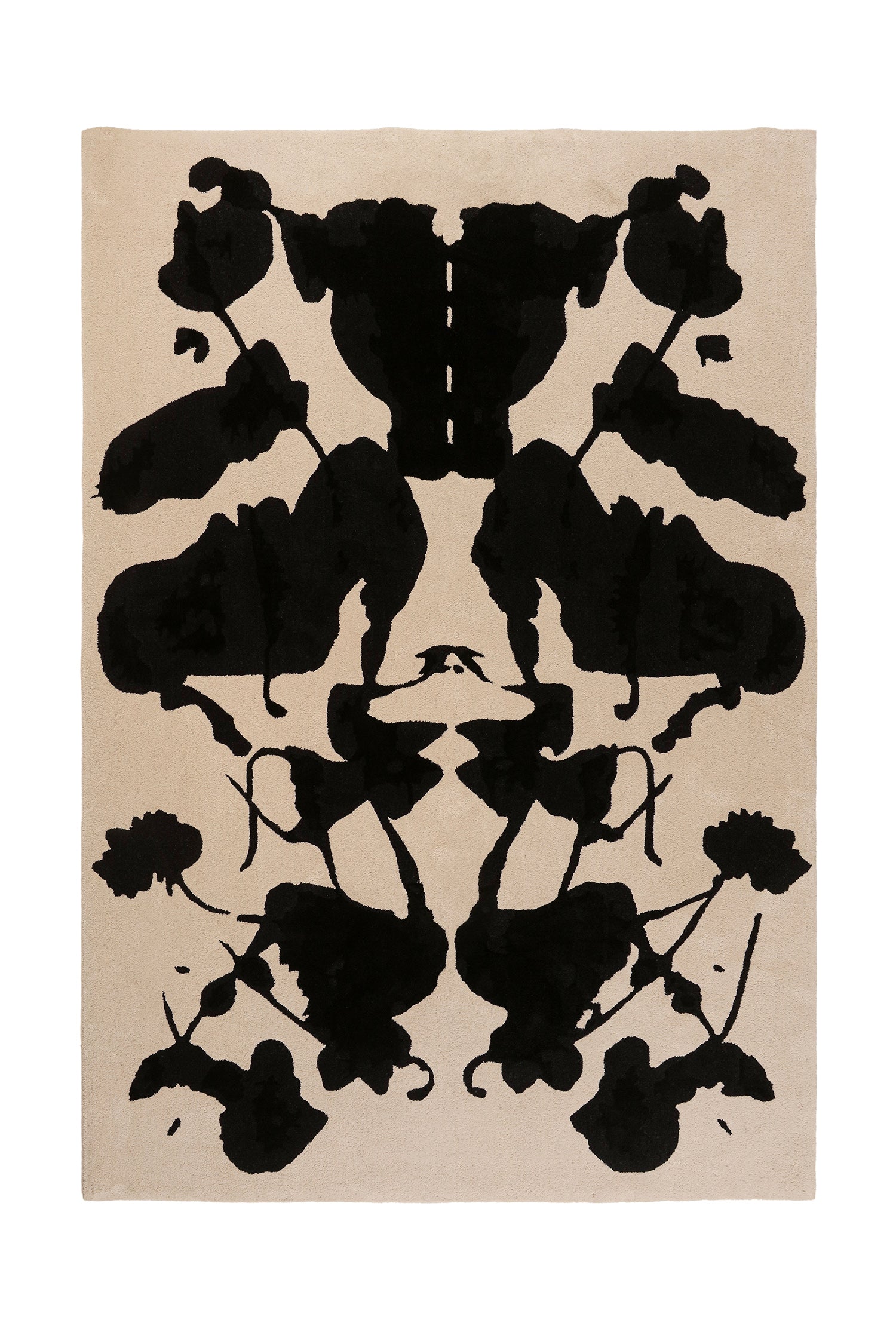 Inspired by the inkblot, a primal symbol of the unconsciousness; this collection translates psychological tension into textile. Two rug designs, in deep black and visceral blue, mirror the duality of instinct. The symmetry and ambiguity created through a meditative process of folding, inking, and listening, the forms evoke both shadow and serenity. This collection is a woven reflection of what lies beneath the surface.